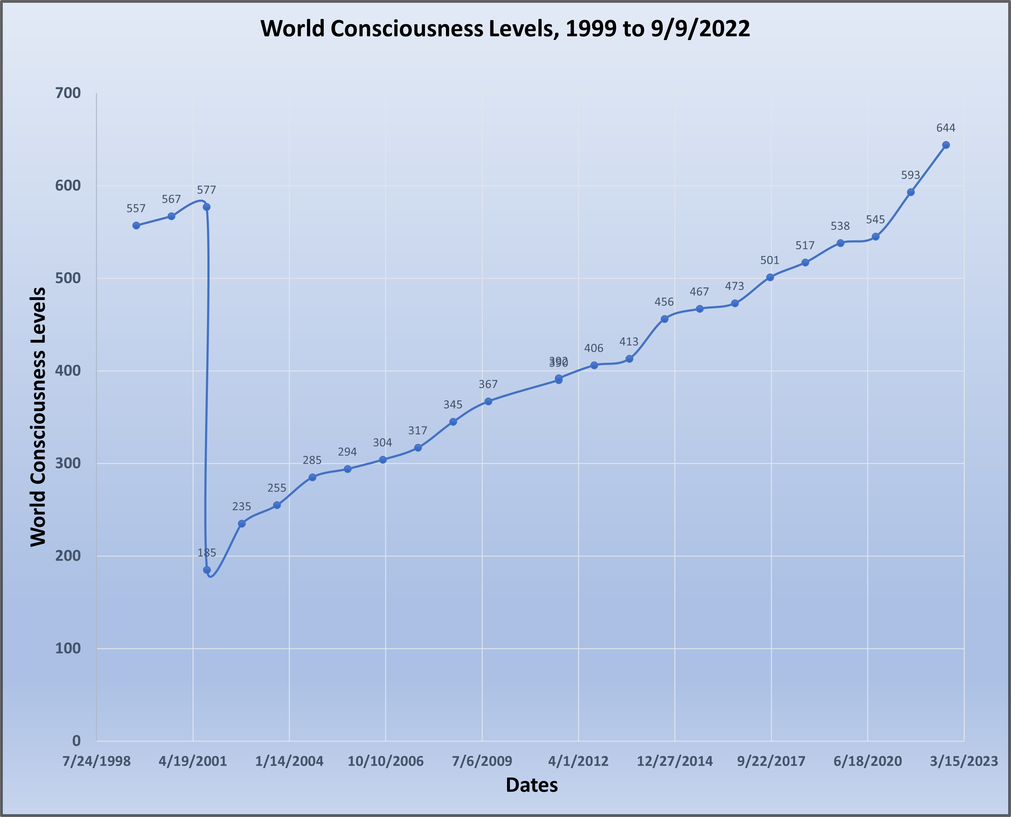 World Consciousness Levels Sept 1999 to Sept 2022