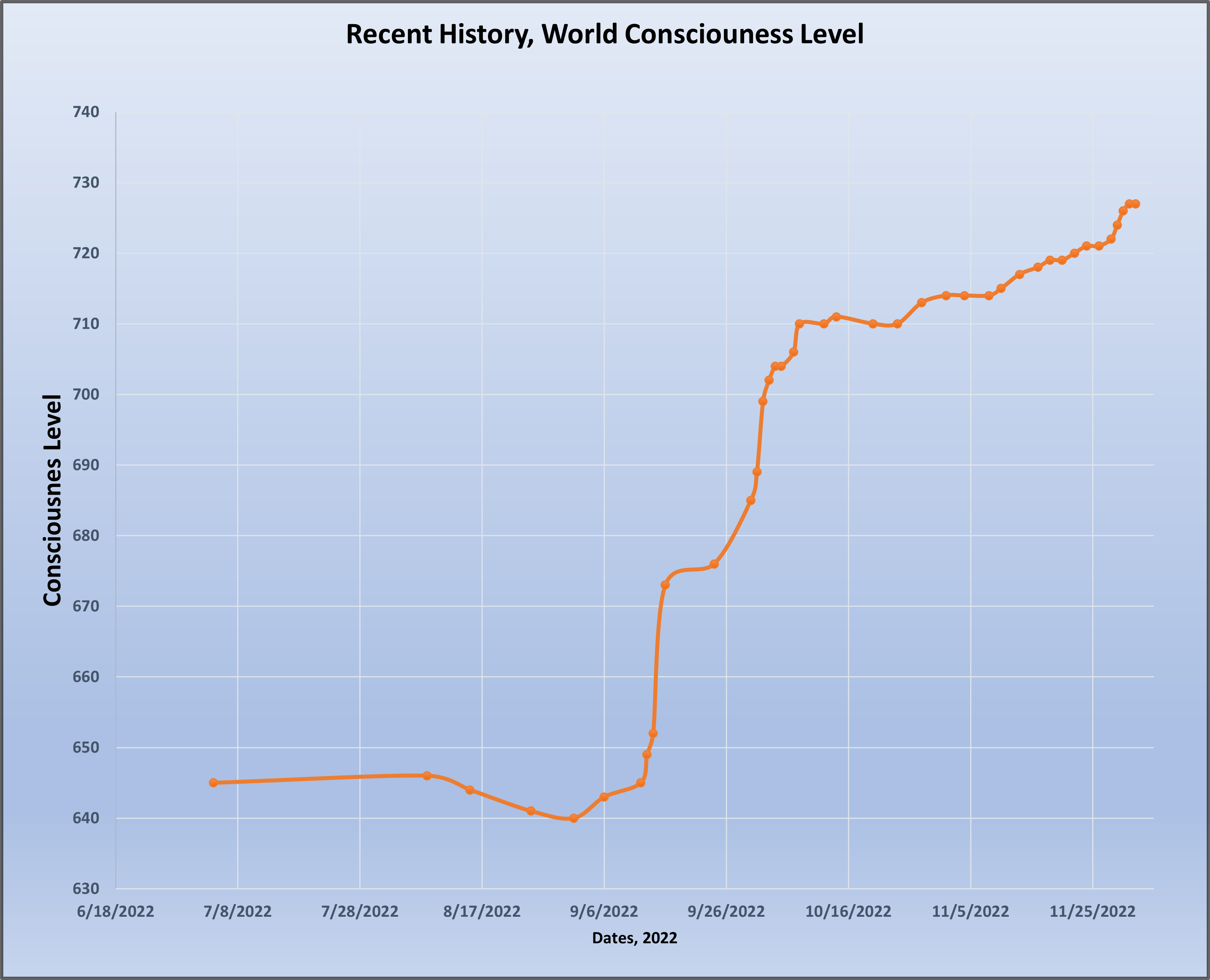 Recent History of World Consciousness Level showing a slight decline and then a non-linear increase.